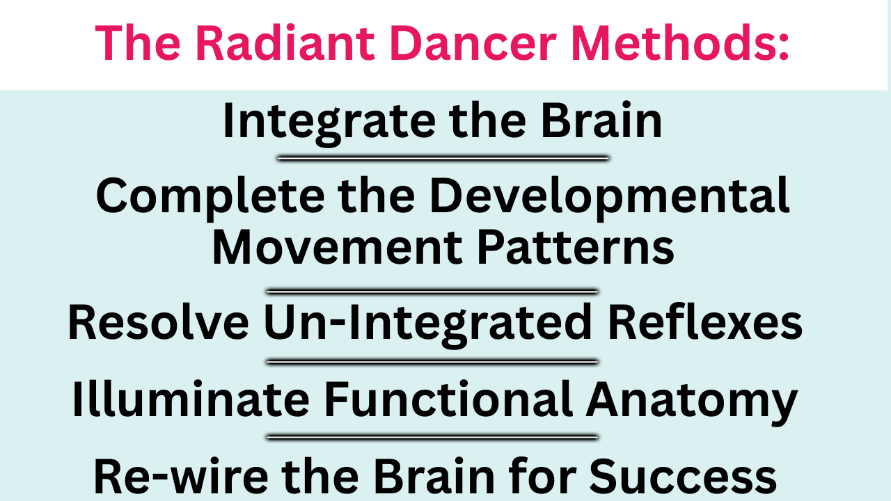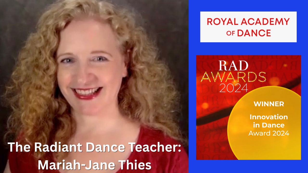 I am the honoured recipient of the 2024 Royal Academy of Dance Innovation in Dance Teacher Award. I was recognized in particular for bringing the concept of the need for Brain Development and Brain Integration in the training of dancers for both learning and performance.